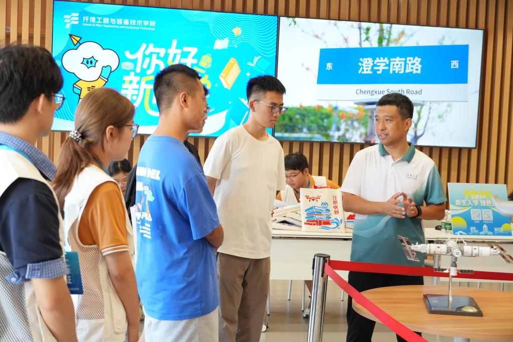 值得一提的是,学院大厅还特别陈列了自主研发的小型固定翼无人机与天宫空间站模型,科技感十足的展品瞬间吸引了新生的目光。姜广君教授和柳宁教授顺势“现场开讲”,用通俗的语言讲解无人机的设计原理、空间站的构造特点,新生们围在展品旁认真倾听,眼神里满是对专业的好奇与向往。这场“沉浸式”专业初体验,不仅拉近了新生与飞行器专业的距离,更悄悄点燃了大家未来的学习热情。